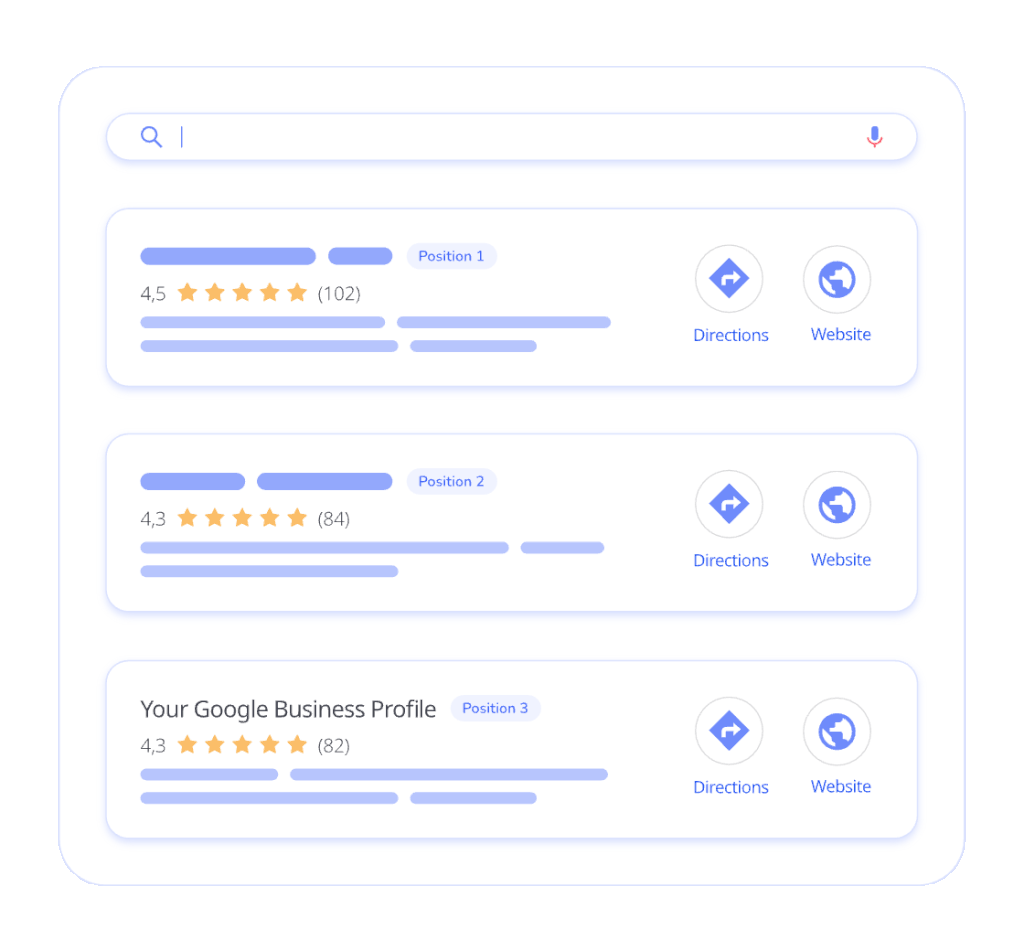 Appear at the top of search results when potential customers look for your products or services in your area. The higher you rank, the more likely people will visit your business.